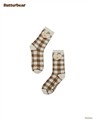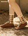 Butterbear系列,質感圖案電繡,襪口花邊設計,MIT舒適棉質格紋中性款中長襪