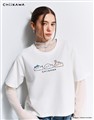 吉伊卡哇系列,吉伊卡哇、小八貓、兔兔趴著趣味膠印,舒適棉質面料,落肩寬短TEE