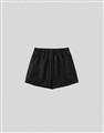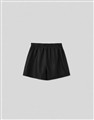 質感霧面皮革,舒適鬆緊腰頭,直腿車縫拼接線設計,有側邊口袋