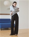 舒適親膚有磅數坑紋針織,腰頭鬆緊帶抽繩,版型修身微寬鬆直筒