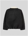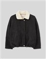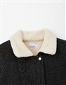 舒適親膚毛呢表層,無肩線寬鬆版型,內層整件保暖羊羔毛,可做立領夾克造型