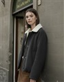 舒適親膚毛呢表層,無肩線寬鬆版型,內層整件保暖羊羔毛,可做立領夾克造型