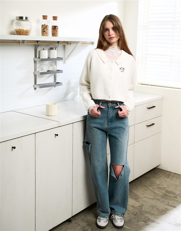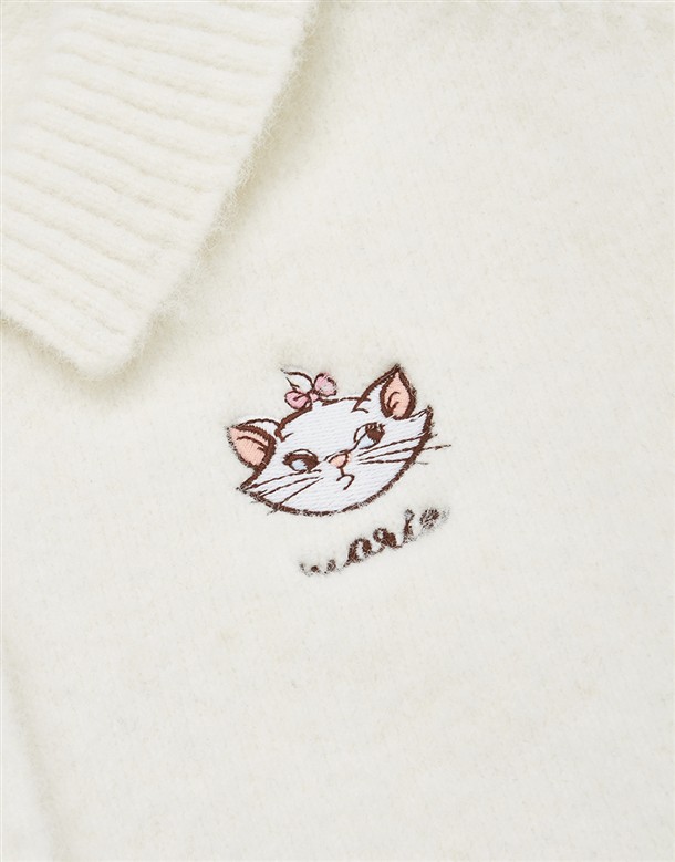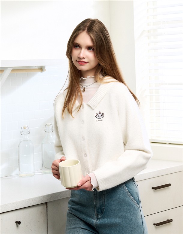 瑪麗貓系列,精緻圖案電繡,舒適馬海毛翻領開襟毛衣