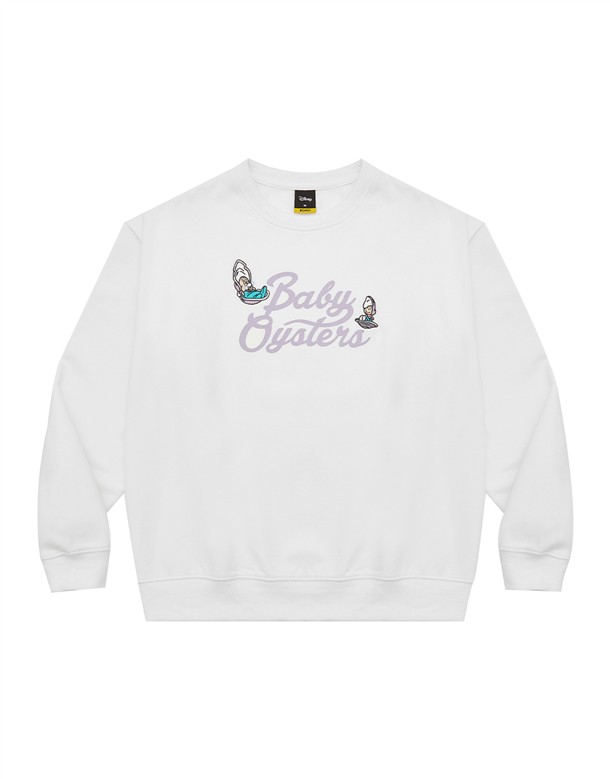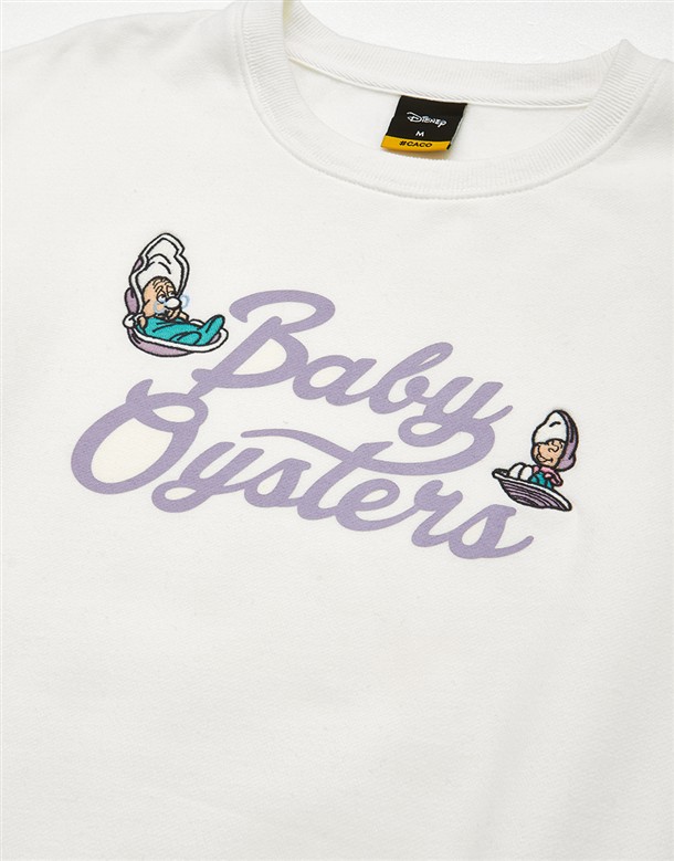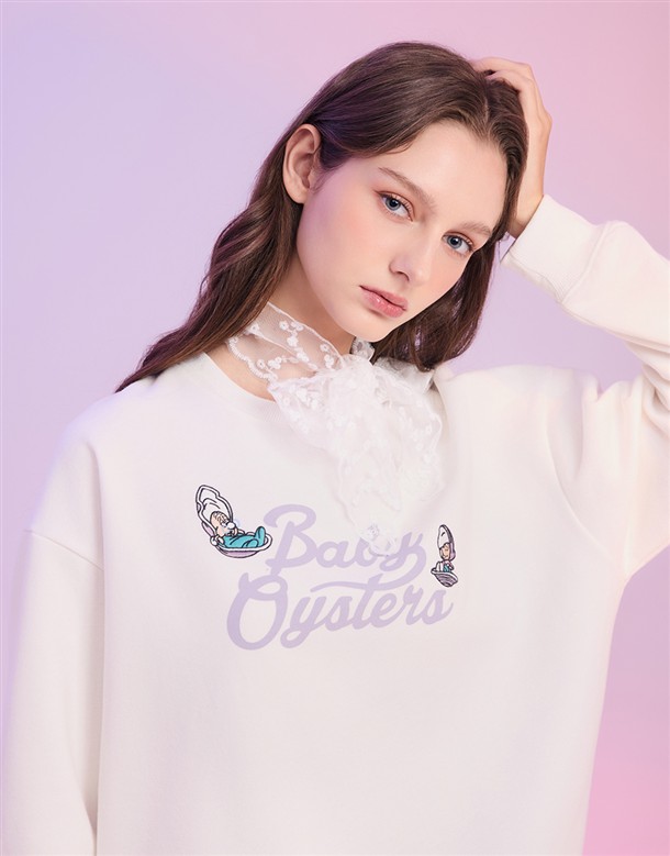 牡蠣寶寶系列,掛字印刷設計,牡蠣寶寶與奶奶電繡,質感薄刷毛落肩大學TEE