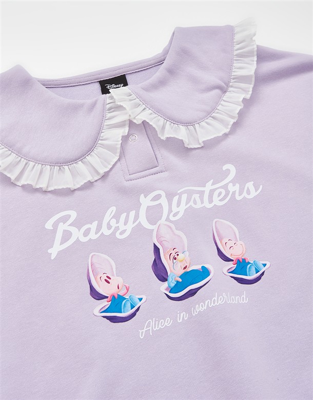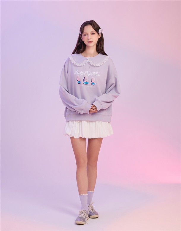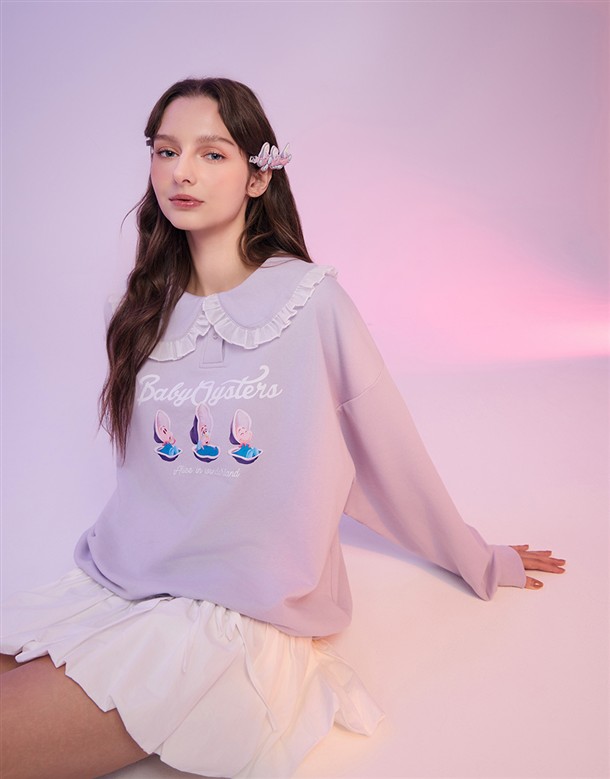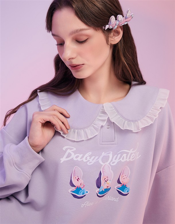 牡蠣寶寶系列,牡蠣寶寶精緻印刷,質感娃娃領設計,衛衣面料微落肩大學TEE