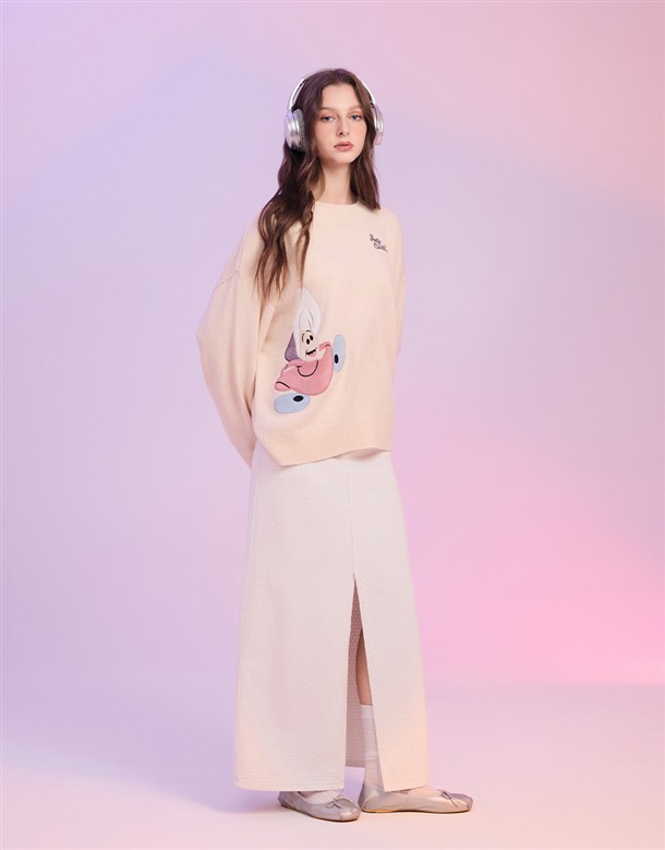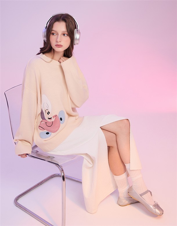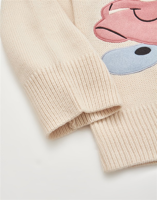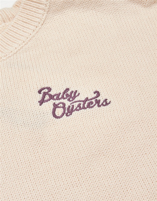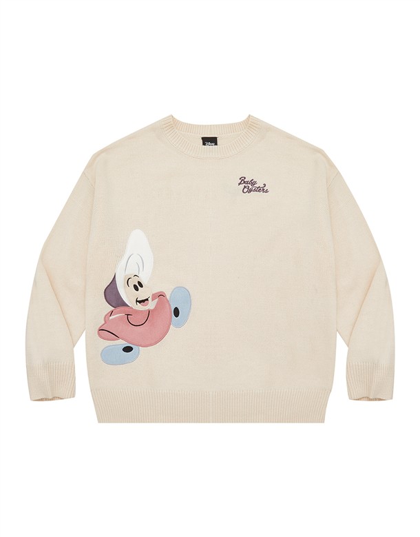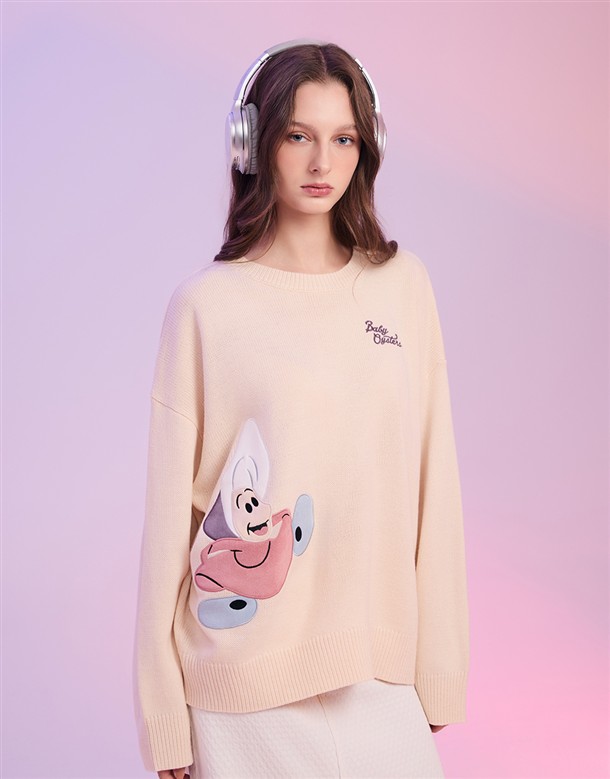 牡蠣寶寶系列,牡蠣寶寶貼布電繡工藝,舒適保暖落肩寬鬆毛衣