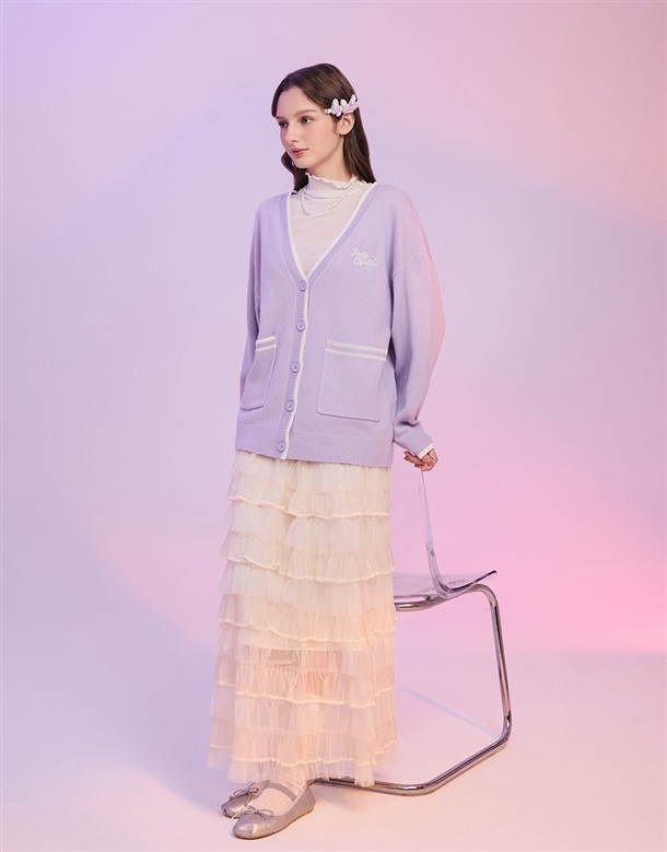 牡蠣寶寶系列,牡蠣寶寶精緻電繡,落肩V領開襟外套