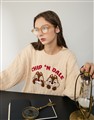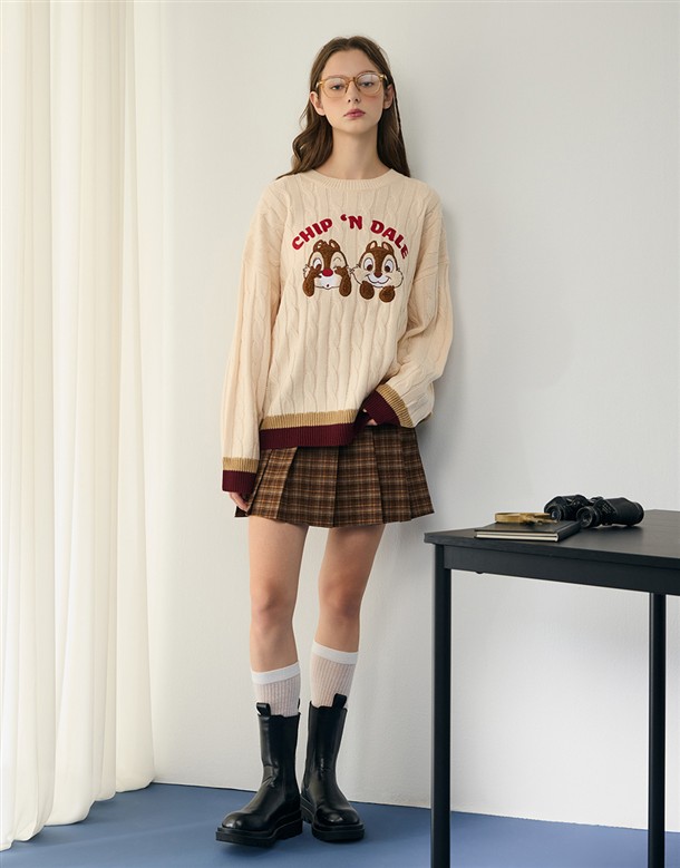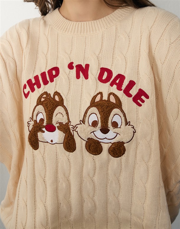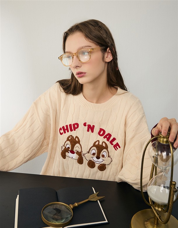 奇奇蒂蒂QQ毛貼布繡設計,寬鬆麻花毛衣