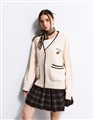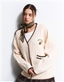 奇奇蒂蒂系列,精緻電繡,撞色配條V領毛織外套,舒適親膚毛織休閒穿搭