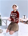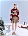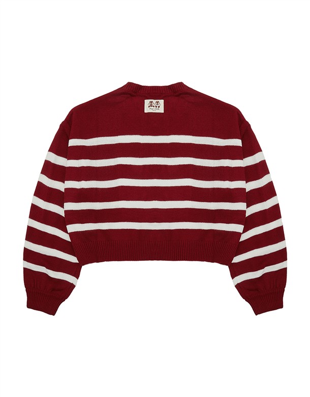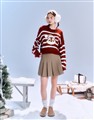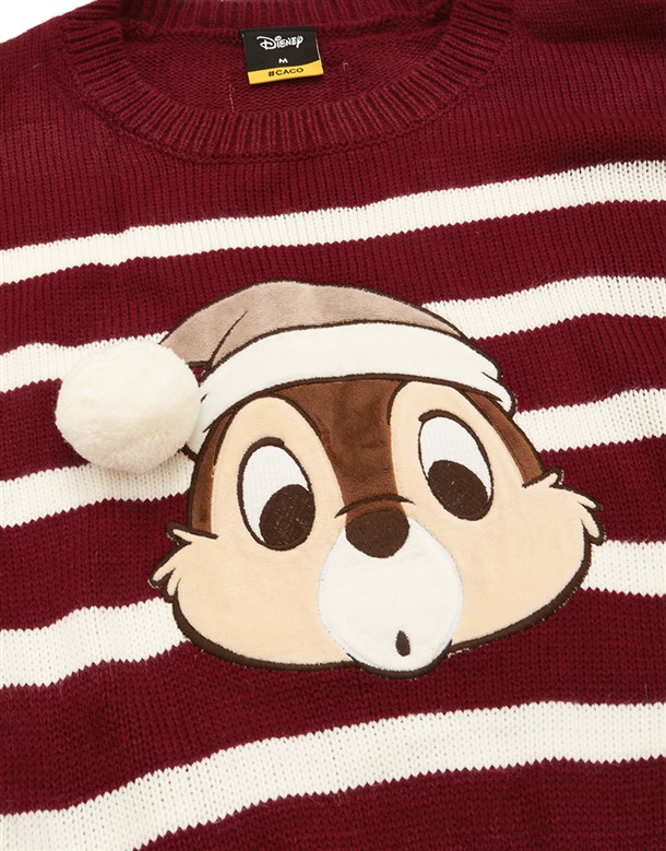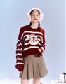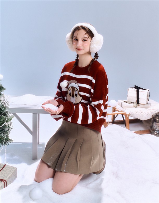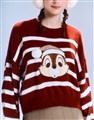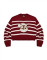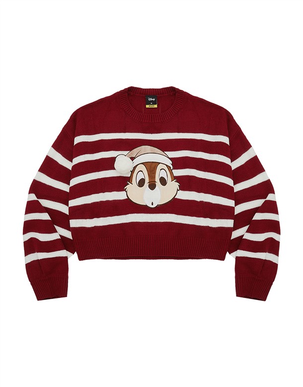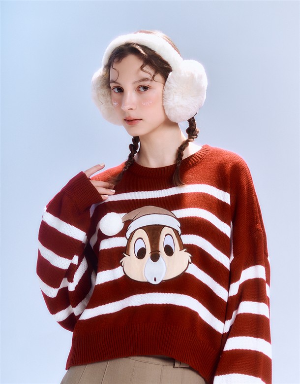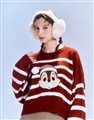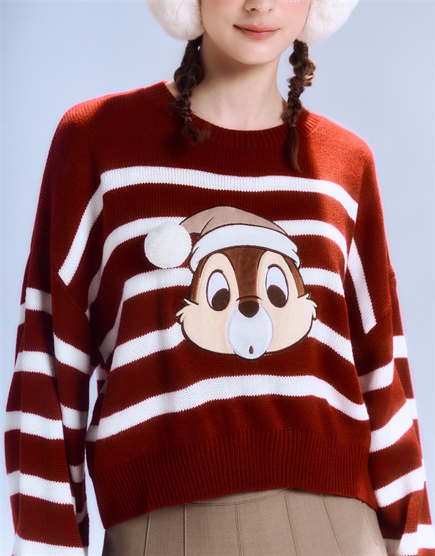 奇奇蒂蒂系列,質感大臉貼布繡,趣味帽子毛球設計,落肩短版微寬鬆保暖毛衣