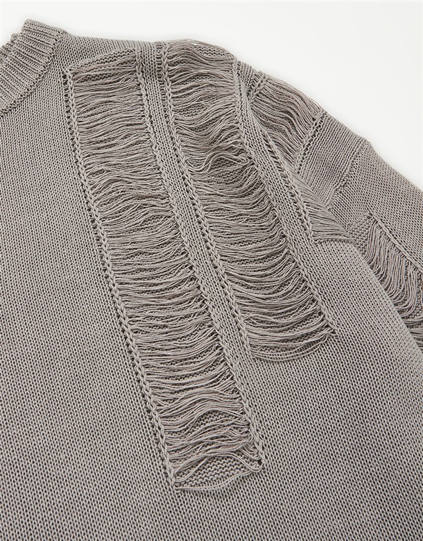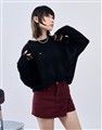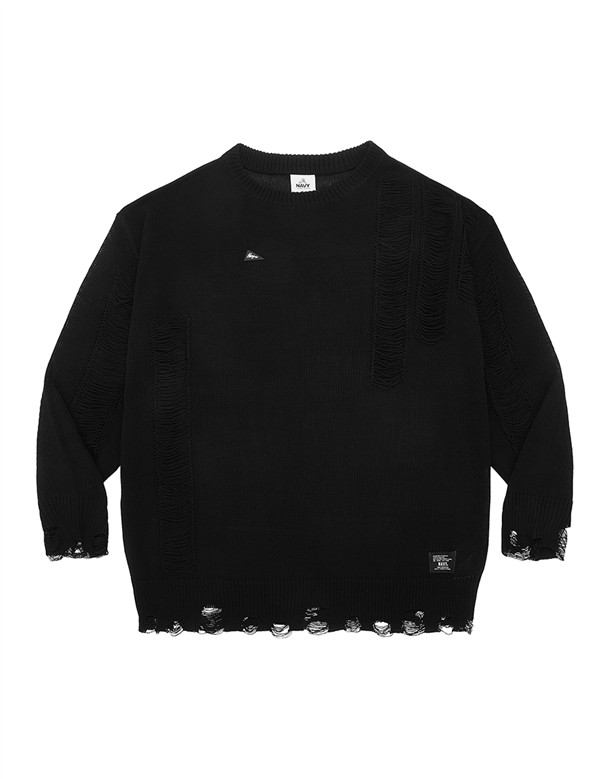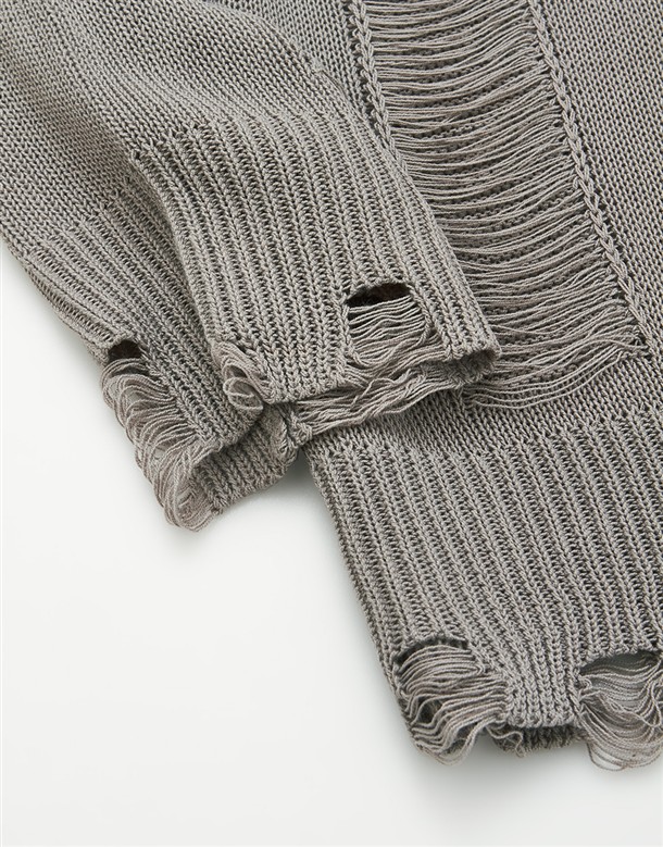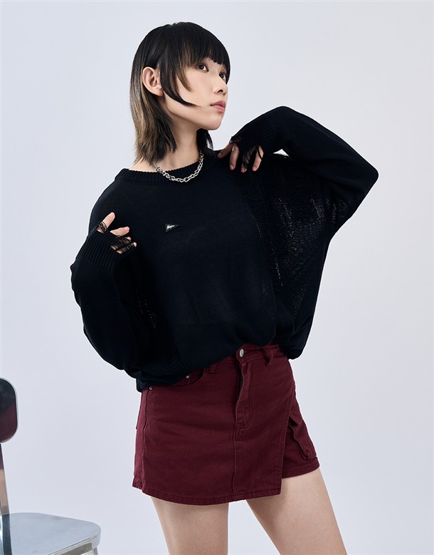 舒適針織微透膚面料,時髦刷破造型設計,寬鬆長版落肩蓋臀穿搭上衣