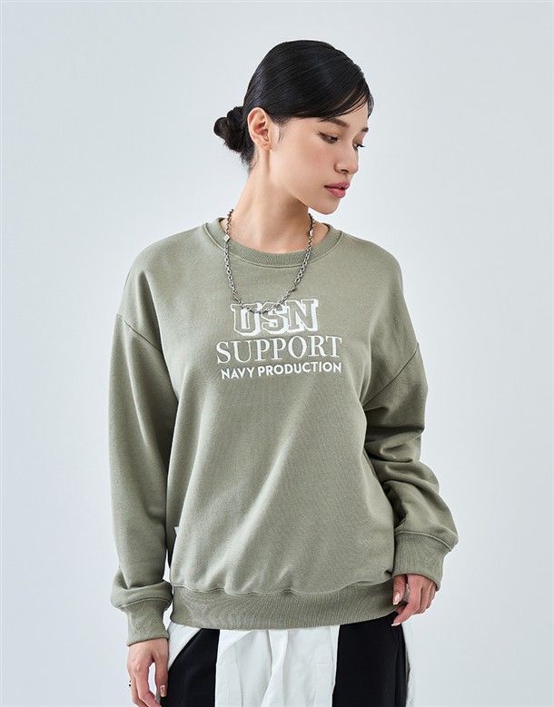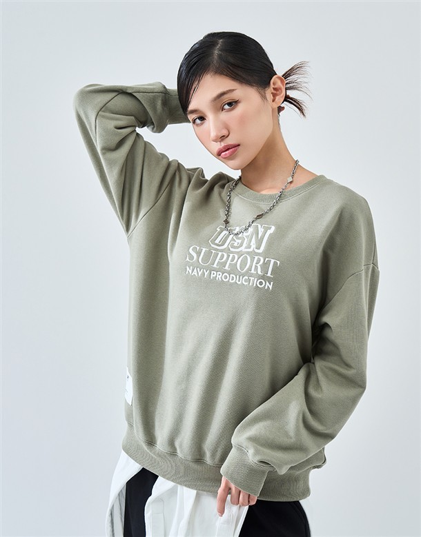 NA文字電繡工藝,質感衛衣微落肩大學TEE
