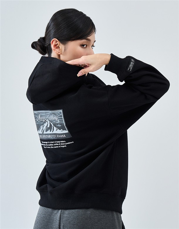 穿搭造型必備,山系圖案印刷工藝,質感內刷薄毛落肩帽TEE