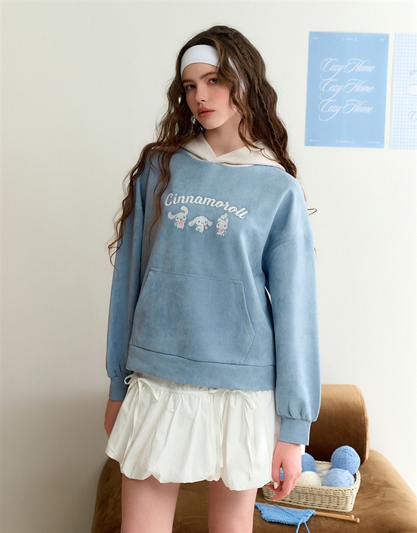 大耳狗精緻電繡,舒適麂皮布,日常穿搭帽TEE