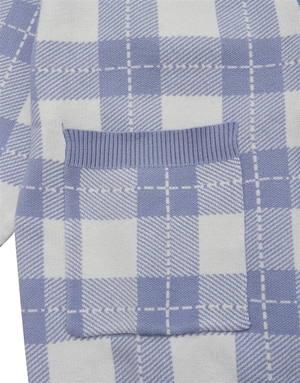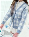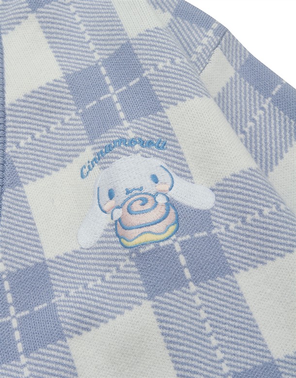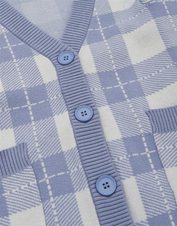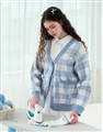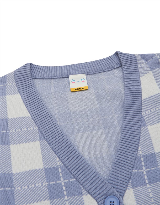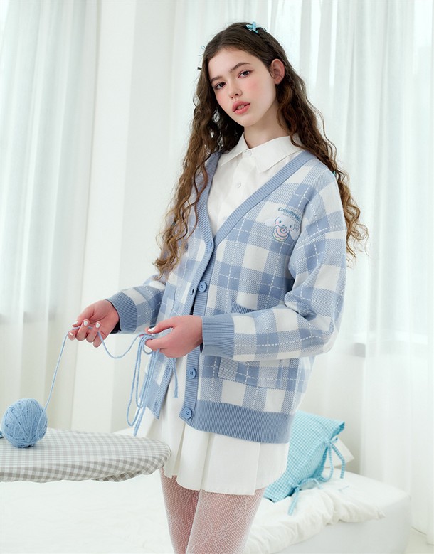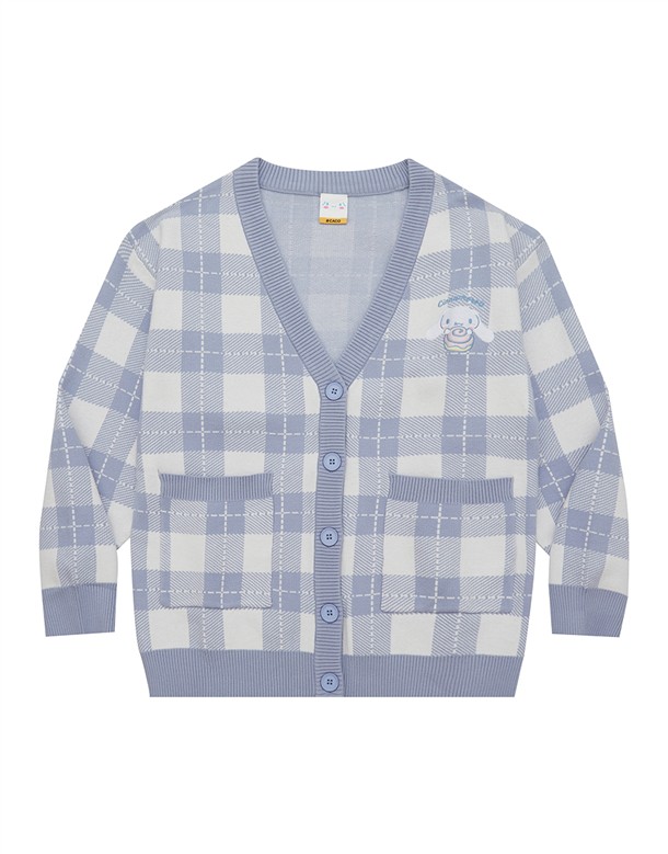 大耳狗滿版格紋提花,胸前精緻電繡,落肩V領開襟外套