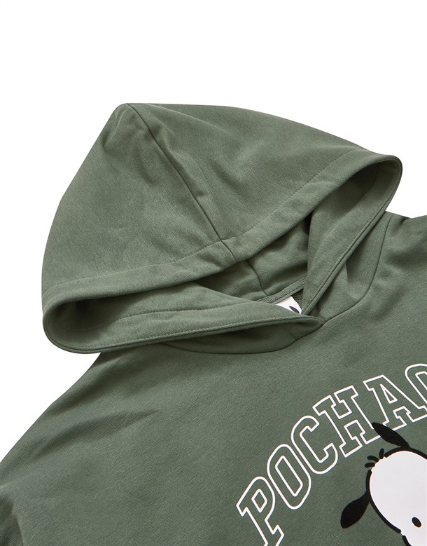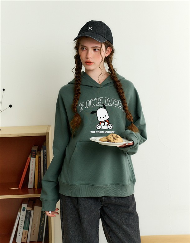 帕恰狗印刷與植絨設計,質感衛衣落肩帽TEE