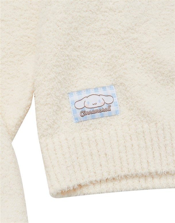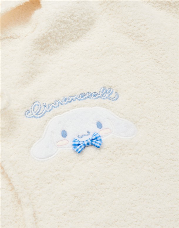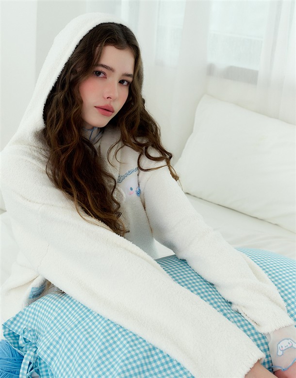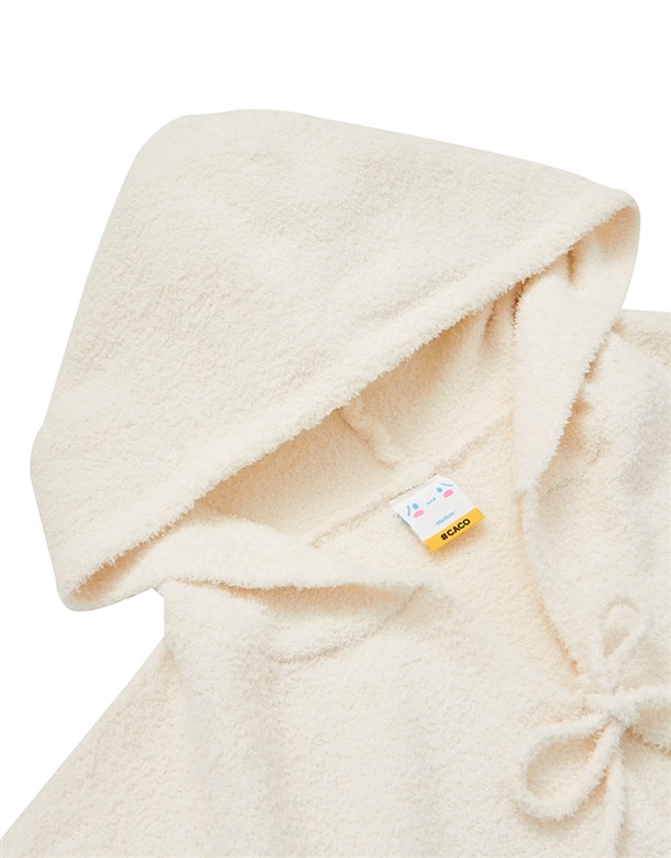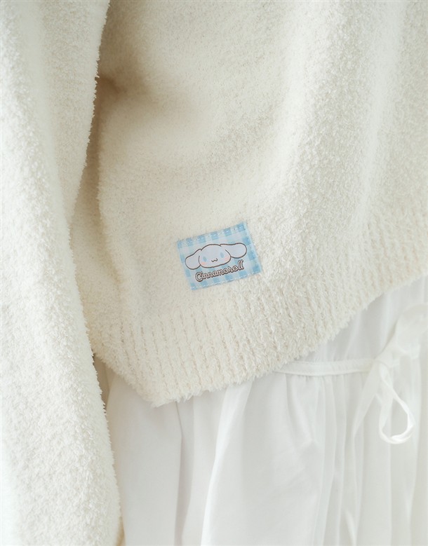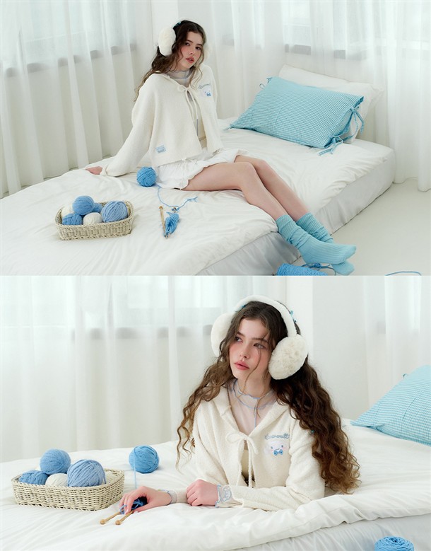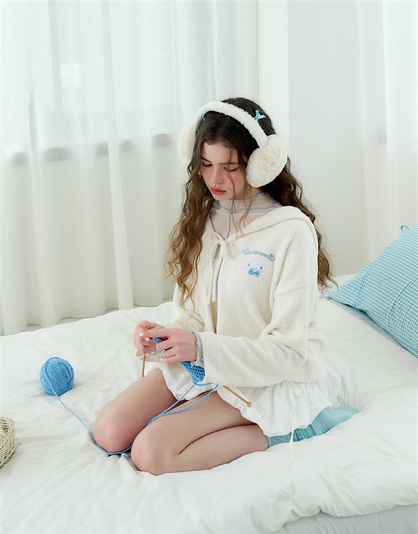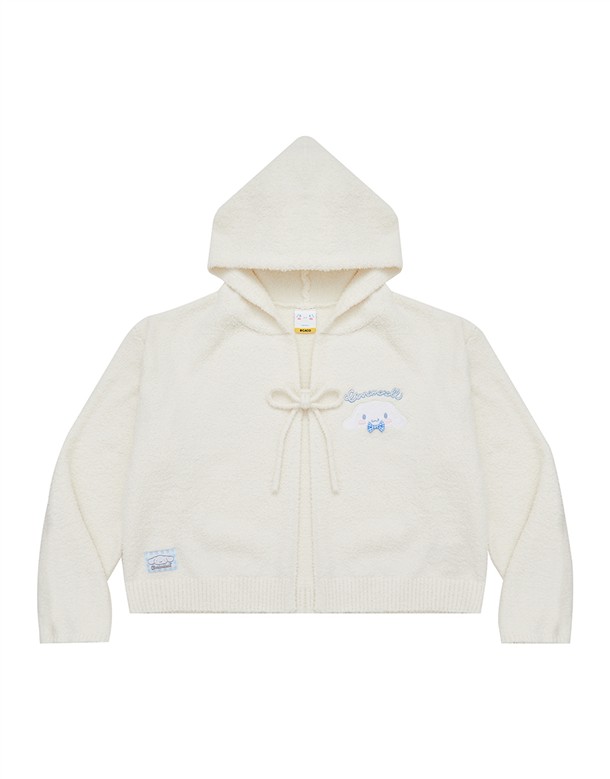 大耳狗保暖針織面料,精緻貼布與蝴蝶結設計,綁帶造型連帽穿搭外套