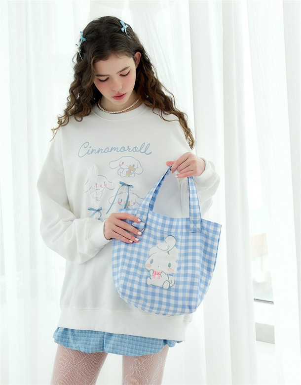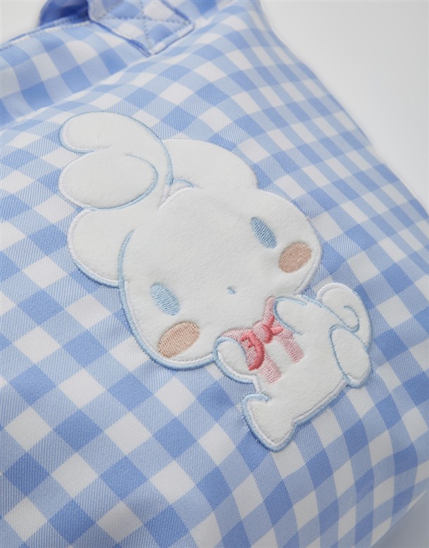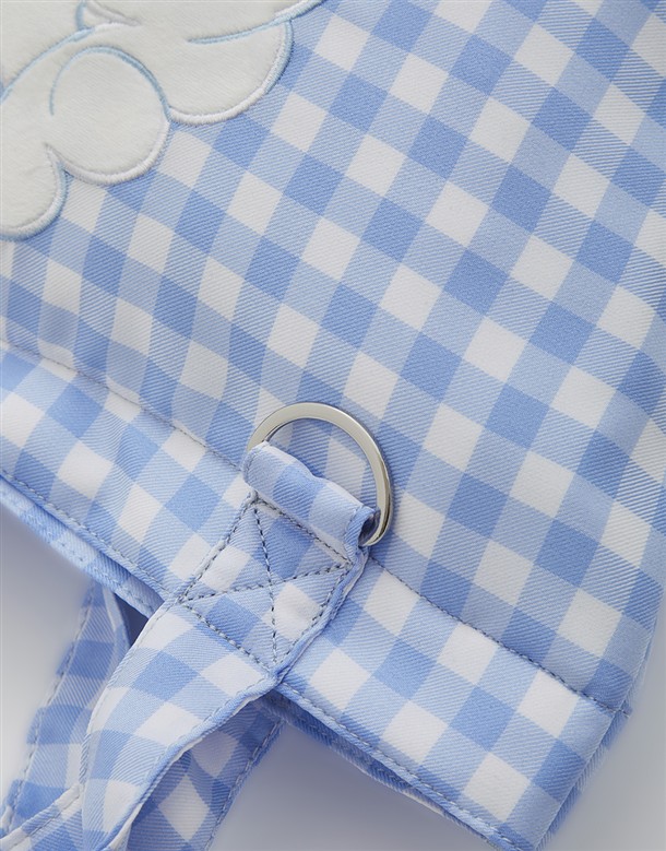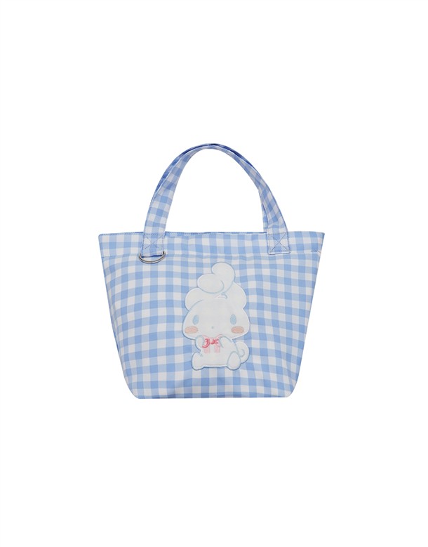 大耳狗系列,質感毛貼布繡,提把D環可掛吊飾設計,日常實用格紋手提袋