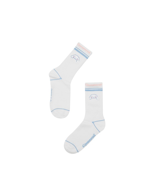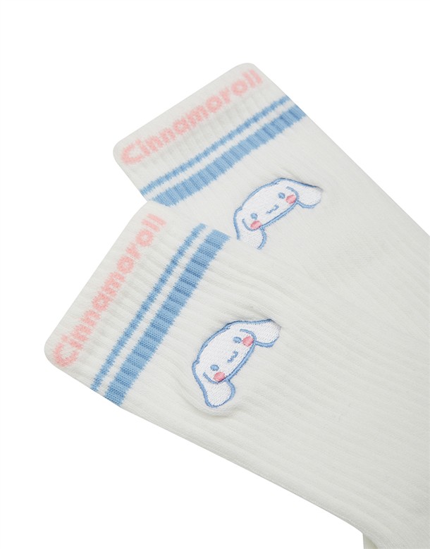 大耳狗系列,精緻大臉電繡,MIT舒適棉質襪口條紋撞色運動中長襪