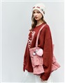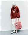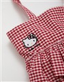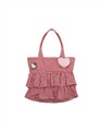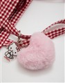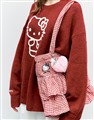 凱蒂貓電繡工藝,附精緻毛絨愛心吊飾,質感撞色格紋荷葉層次手提袋