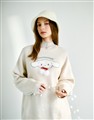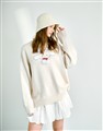大耳狗大臉QQ毛貼布,立體紅色蝴蝶結+毛球設計,質感牛絨落肩毛衣