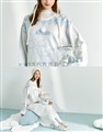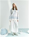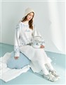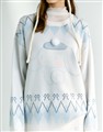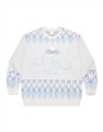大耳狗大圖設計,麂皮貼布貝蕾帽加立體毛球,大身蝴蝶結菱格提花毛衣