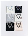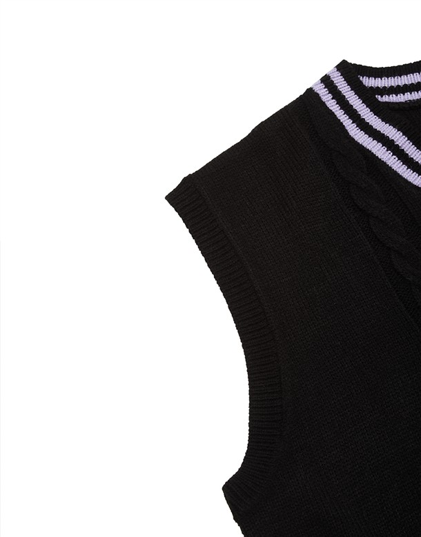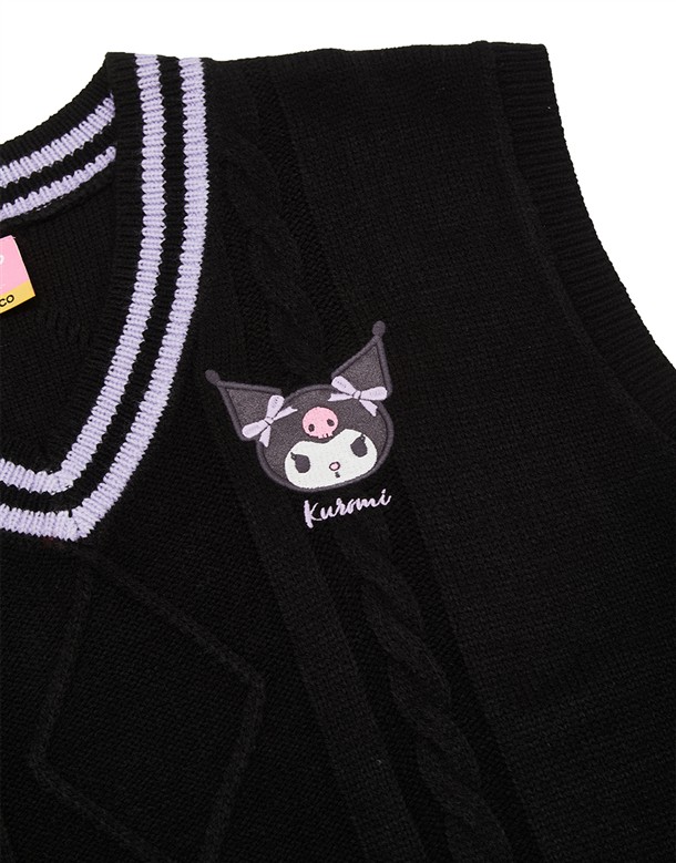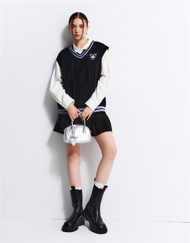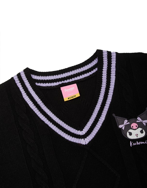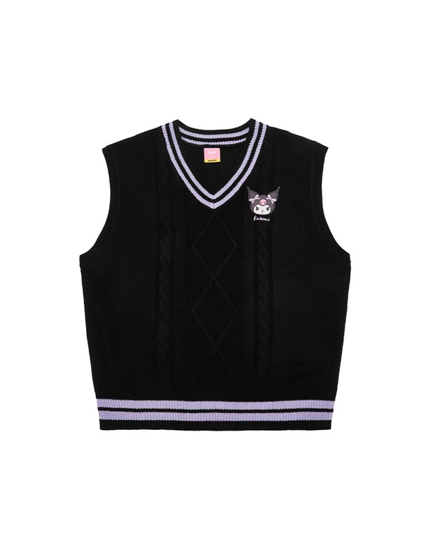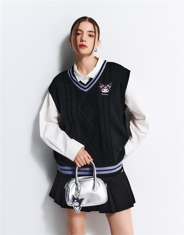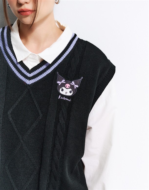 酷洛米精緻貼布電繡,撞色V領學院風背心,衣身精緻提花