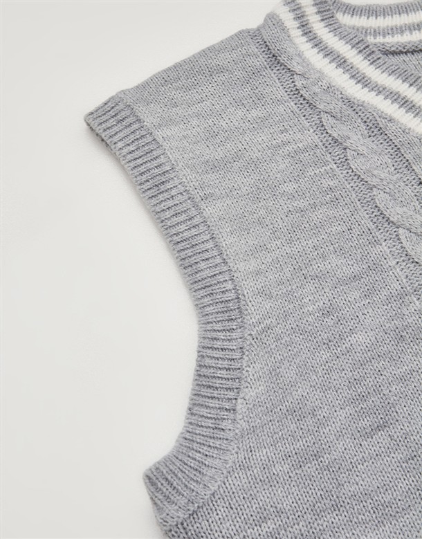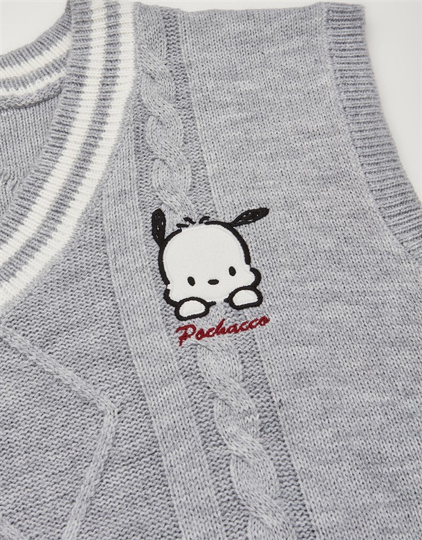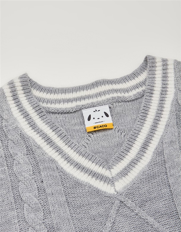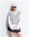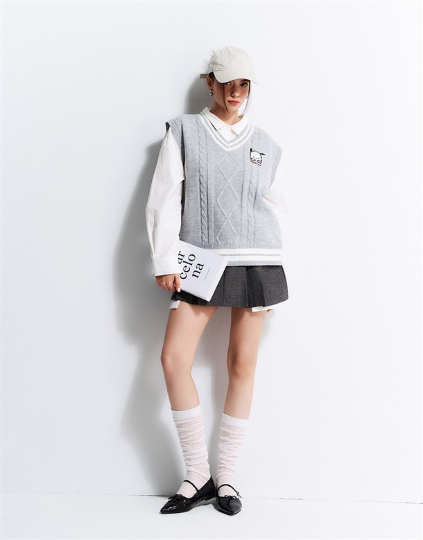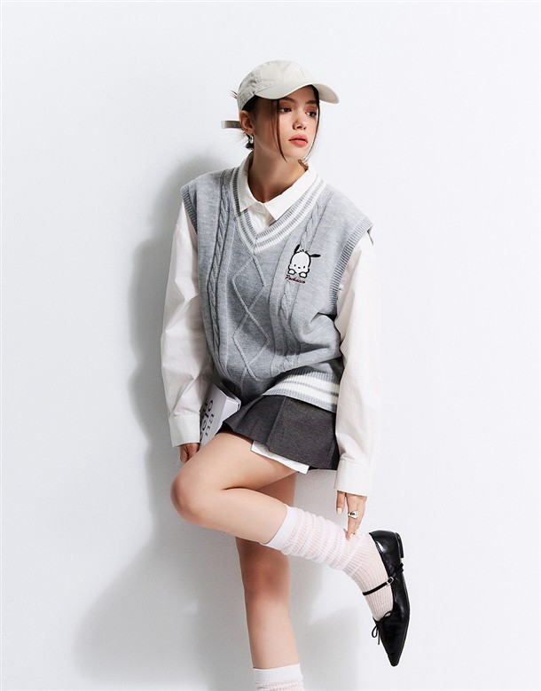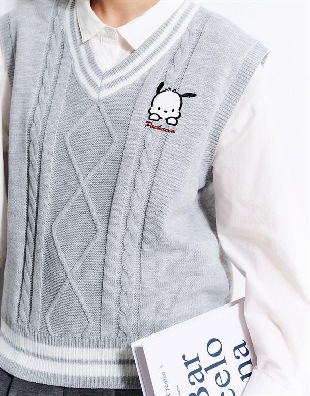 帕恰狗精緻貼布電繡,撞色V領學院風背心,衣身精緻提花