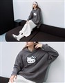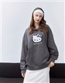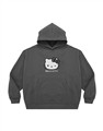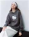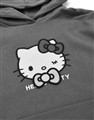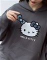 三麗鷗黑灰銀系列,凱蒂貓趣味魔鬼氈設計,質感薄刷毛落肩帽TEE