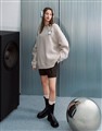 三麗鷗黑灰銀系列,帕恰狗質感前後印刷,左側吊掛質感精美吊飾, 保暖內刷毛落肩寬鬆大學TEE