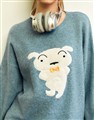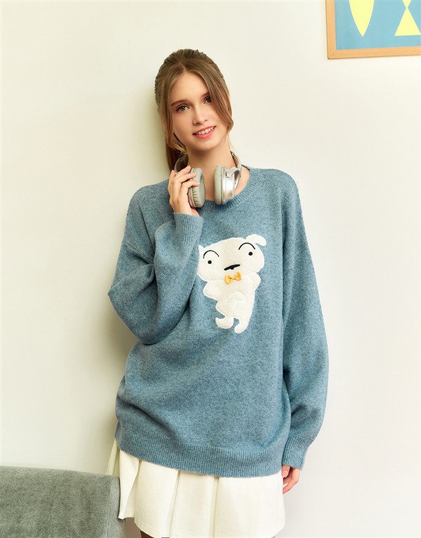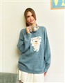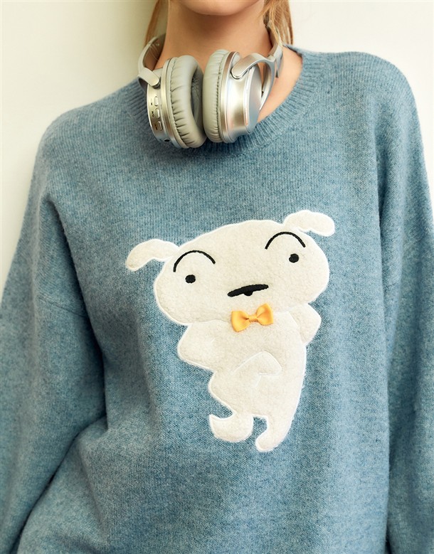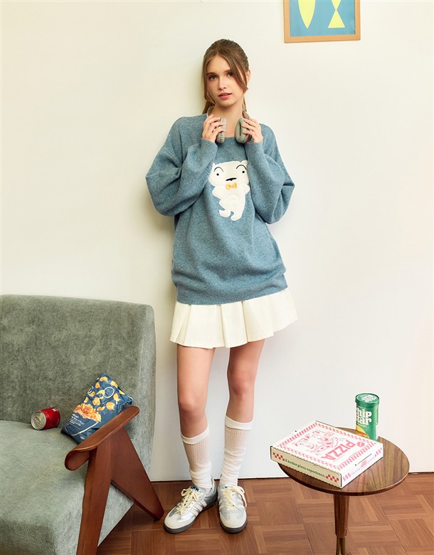 小白QQ毛貼布,立體蝴蝶結,寬鬆落肩毛衣