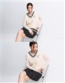 小白精緻貼布電繡,撞色V領學院風背心,衣身精緻提花