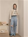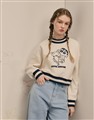 小新小白線條電繡,羅紋撞色短版高領上衣
