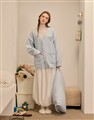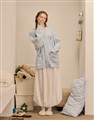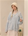 小白胸前精緻電繡,背面文字提花,舒適居家毛絨開襟外套