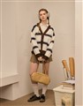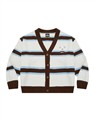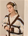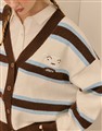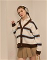 小白前胸麂皮小貼布,撞色條紋仿牛絨開襟外套