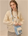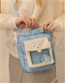 小白精緻印花,透明袋口設計,撞色貼袋側背袋