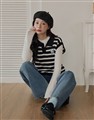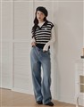 可愛小精靈繡花,條紋簡約不單調,針織背心秋冬搭配的好幫手