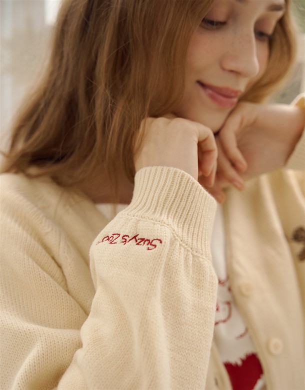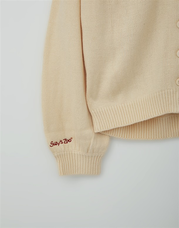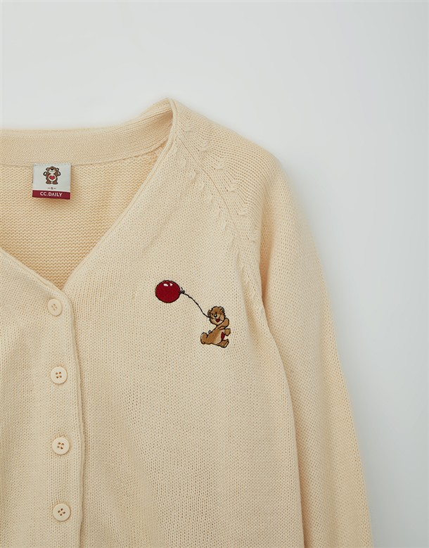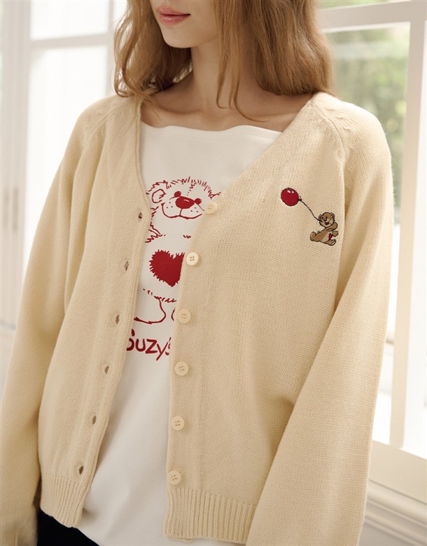 Suzy's zoo氣球熊熊電繡設計,手感偏厚實的仿羊絨面料,拉克蘭袖設計,版型微寬鬆