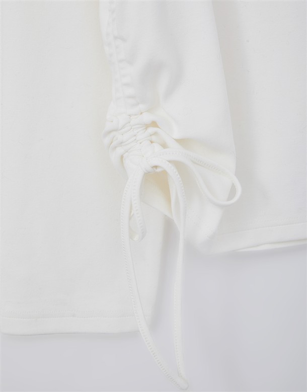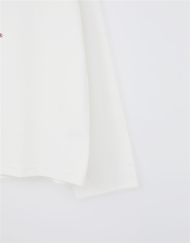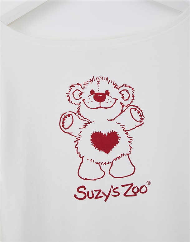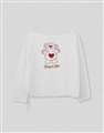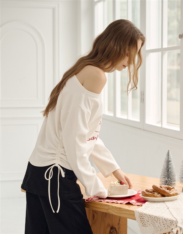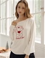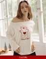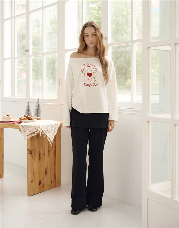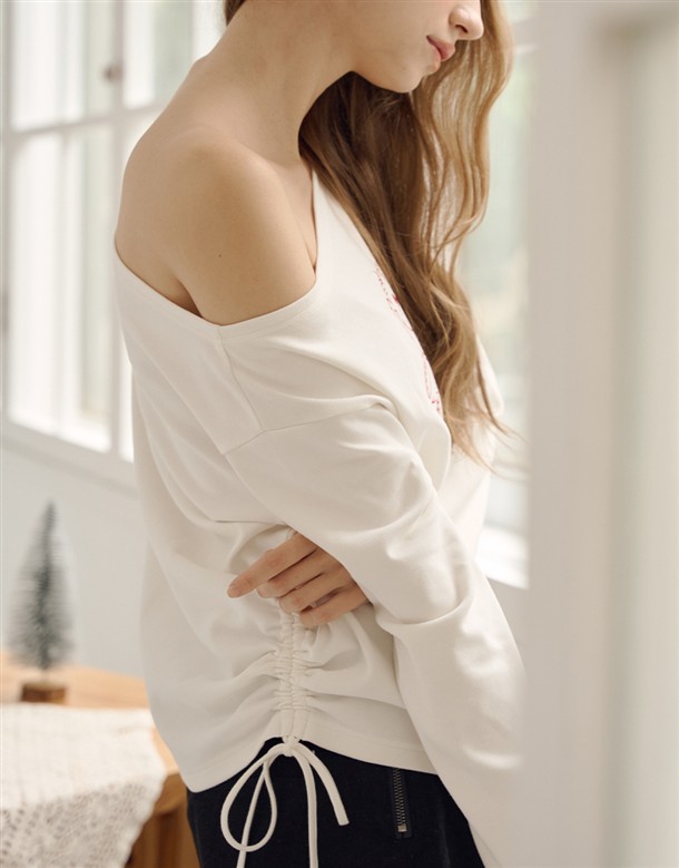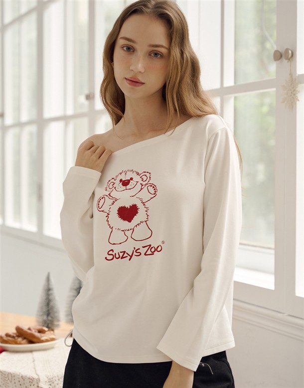 舒適親膚保暖磨毛絨,寬領可拉斜肩,單邊抽繩設計,亮眼俏皮熊熊印花