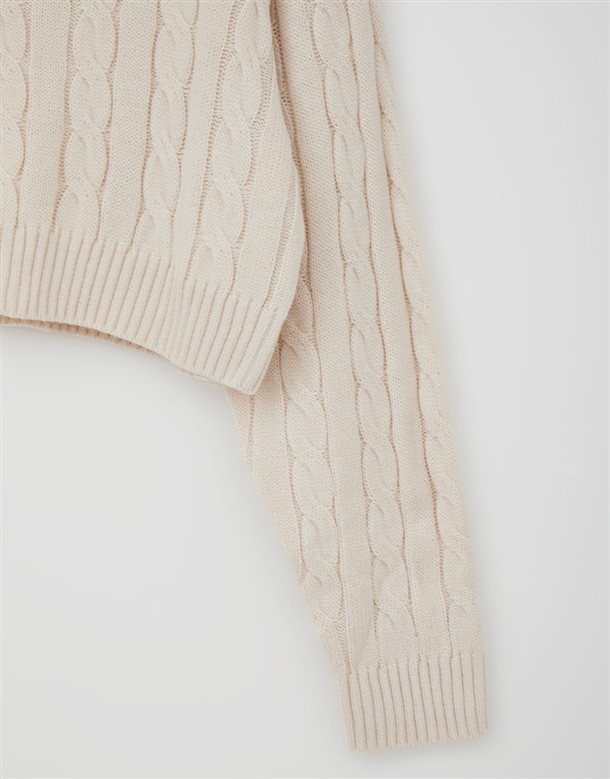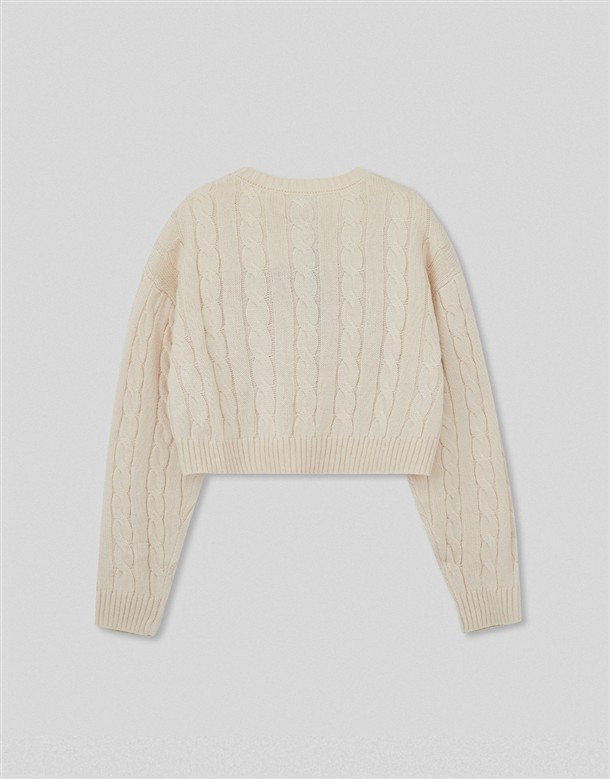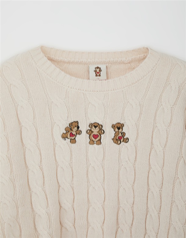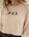 Suzy's zoo熊熊電繡,舒適親膚仿羊絨紗線,版型中短版,經典麻花織紋,俏皮熊熊排版