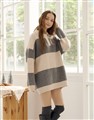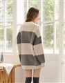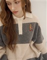 Suzy's zoo熊熊電繡設計,舒適親膚仿牛絨紗線,寬條撞色配色設計,慵懶鬆弛版型,隨興大翻領半開釦造型,小隻女可當洋裝穿著