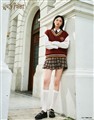 哈利波特系列,撞色V領學院風毛衣,可拆袖變成毛衣背心,葛來分多精緻學院電繡設計