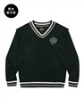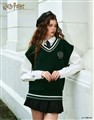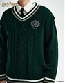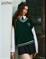 哈利波特系列,撞色V領學院風毛衣,可拆袖變成毛衣背心,史萊哲林精緻學院電繡設計
