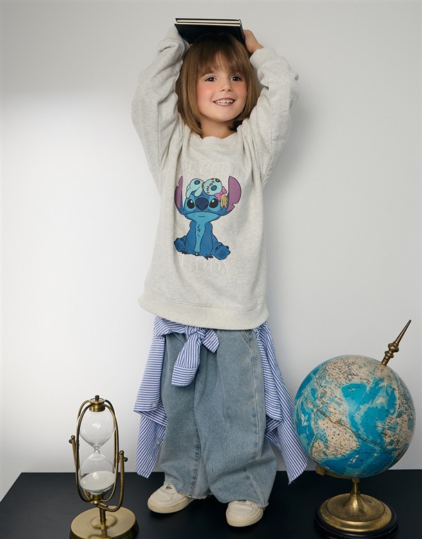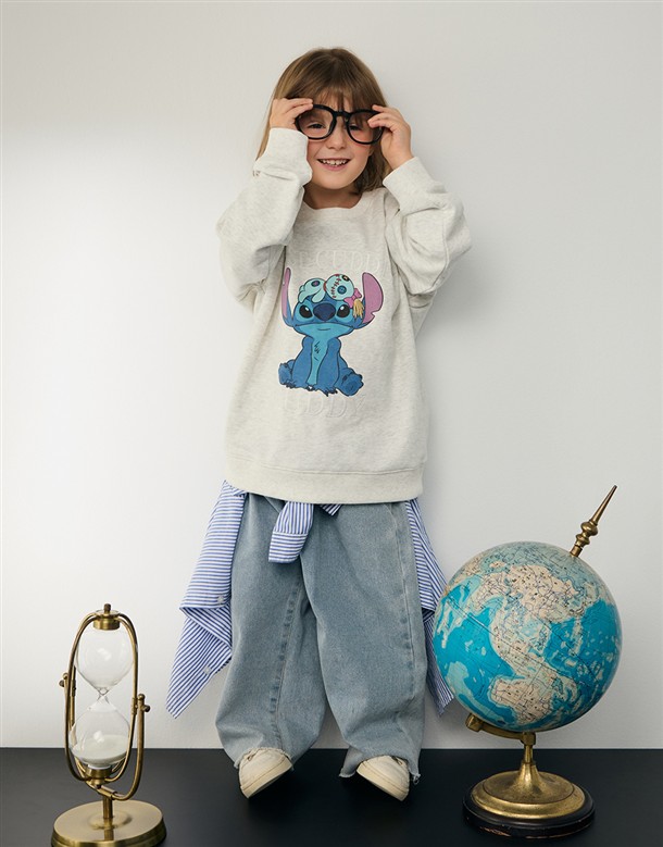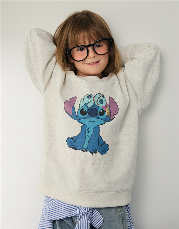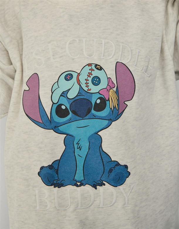 史迪奇與醜丫頭設計,質感大圖印花工藝,舒適棉質衛衣落肩寬鬆大學TEE