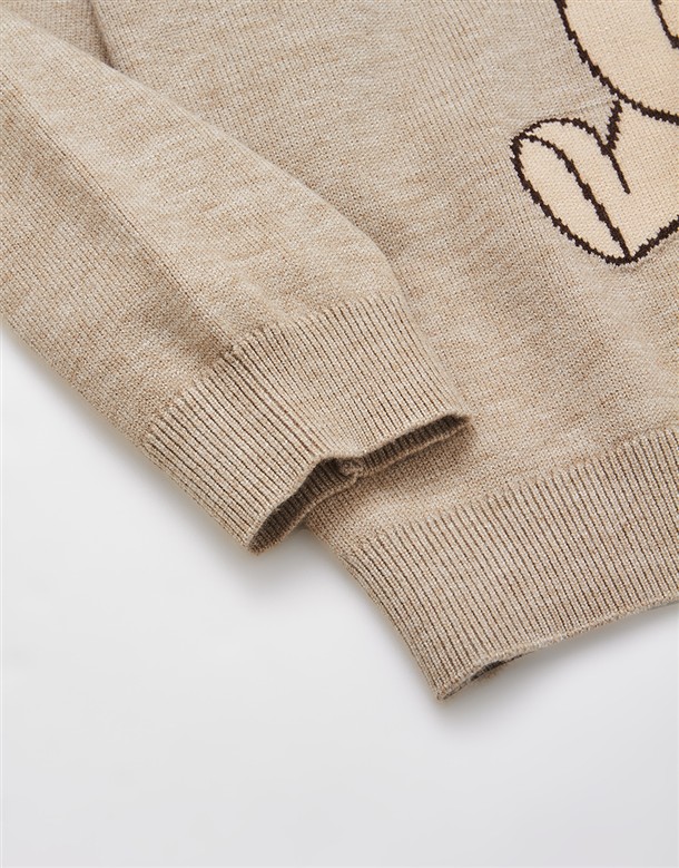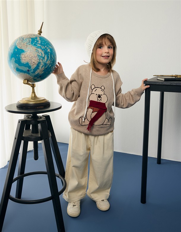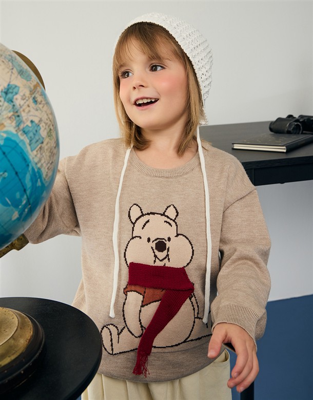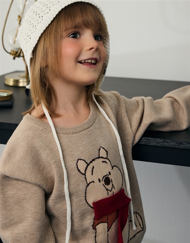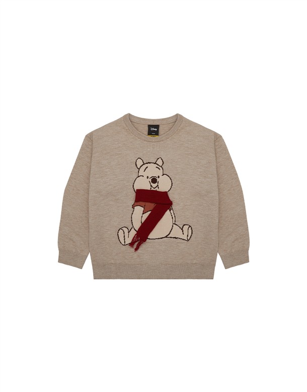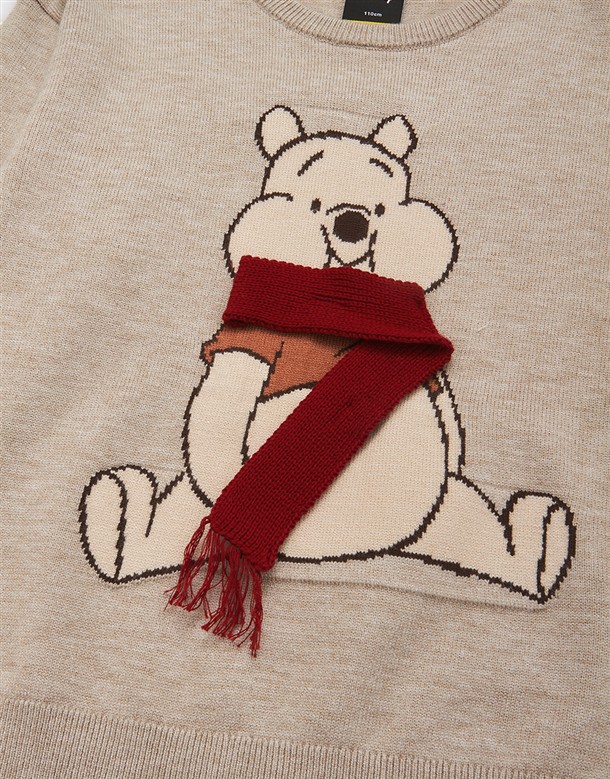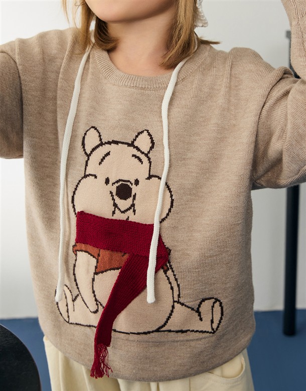 小熊維尼大圖緹花,接立體圍巾設計寬鬆毛衣