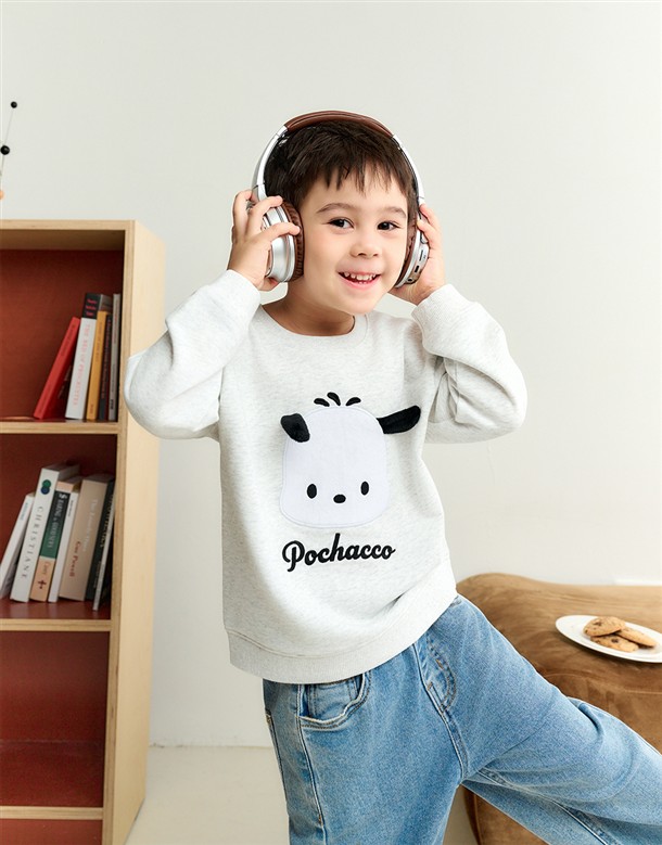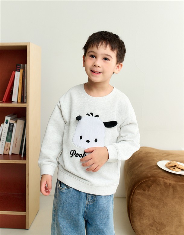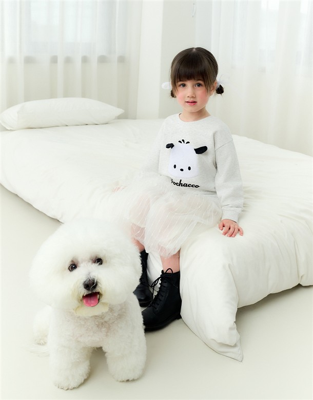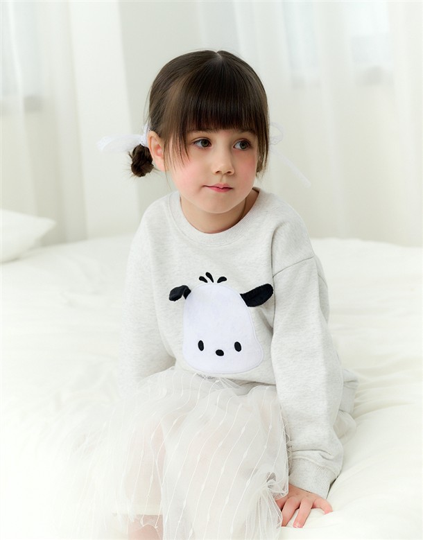 帕恰狗銀狐絨貼布,立體耳朵趣味設計,質感衛衣微落肩大學TEE