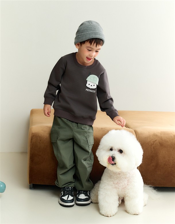 帕恰狗精緻印刷,趣味立體毛帽設計,質感面料落肩大學TEE