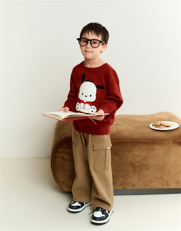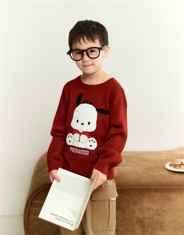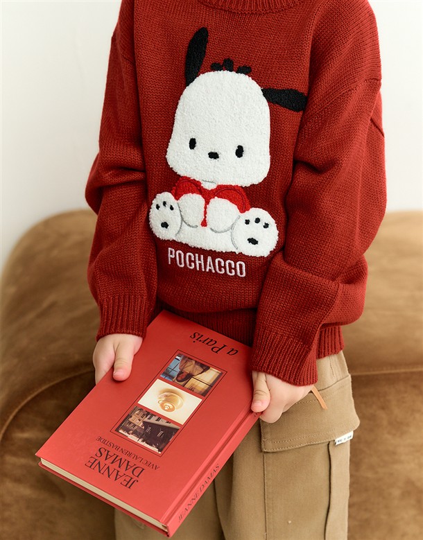帕恰狗質感毛巾繡工藝,舒適保暖落肩寬鬆毛衣