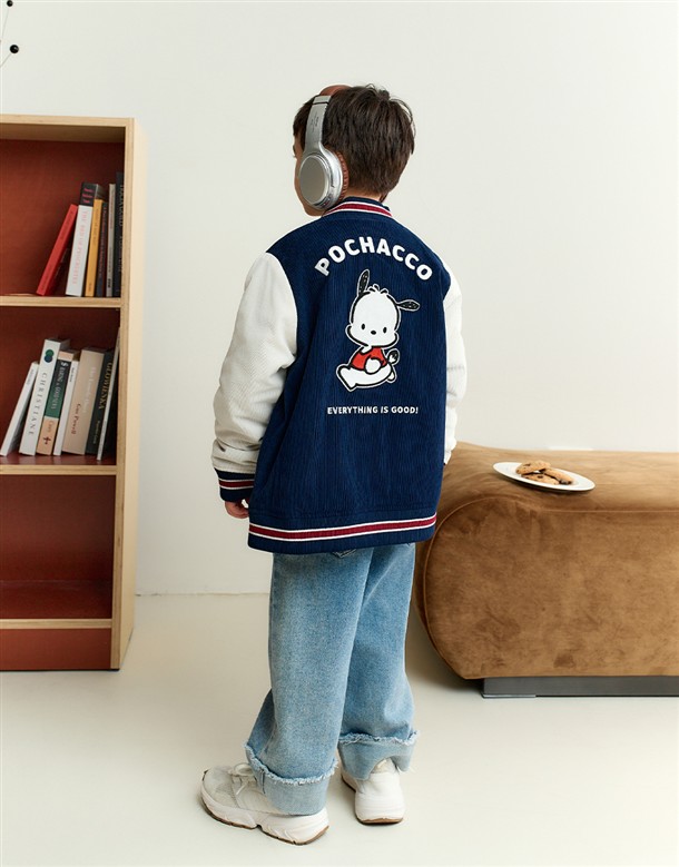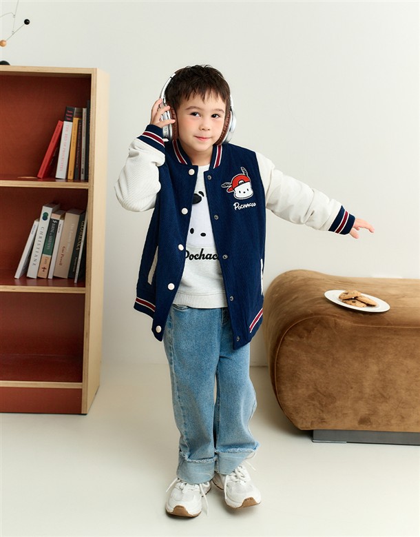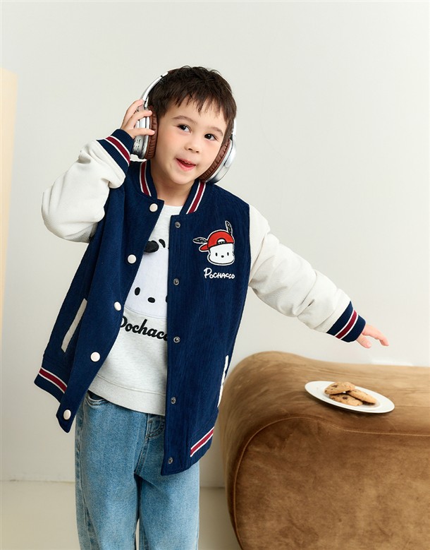 帕恰狗質感貼布繡,燈芯絨棒球外套