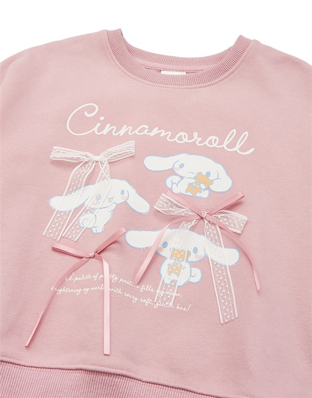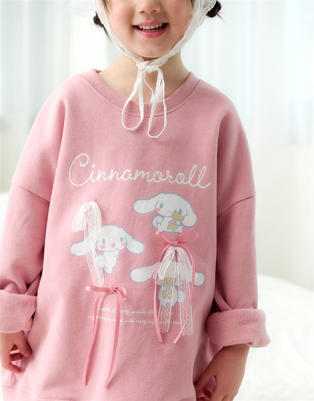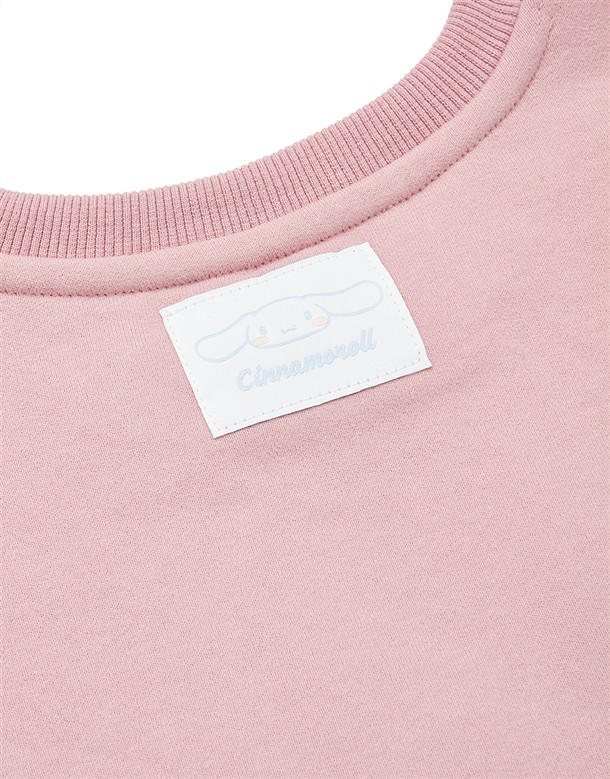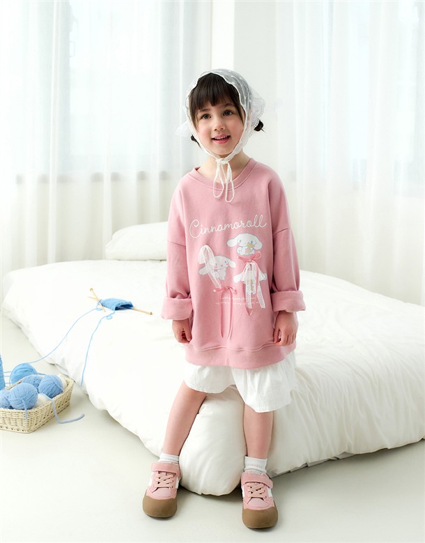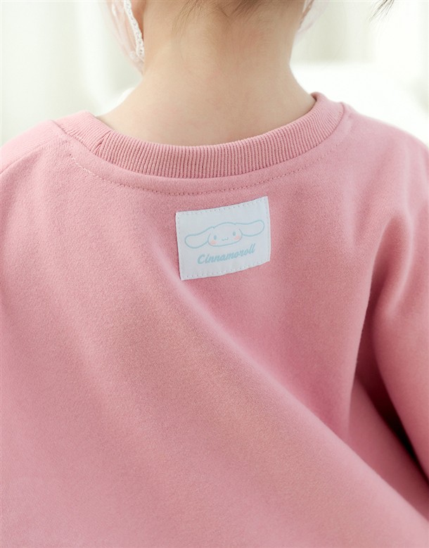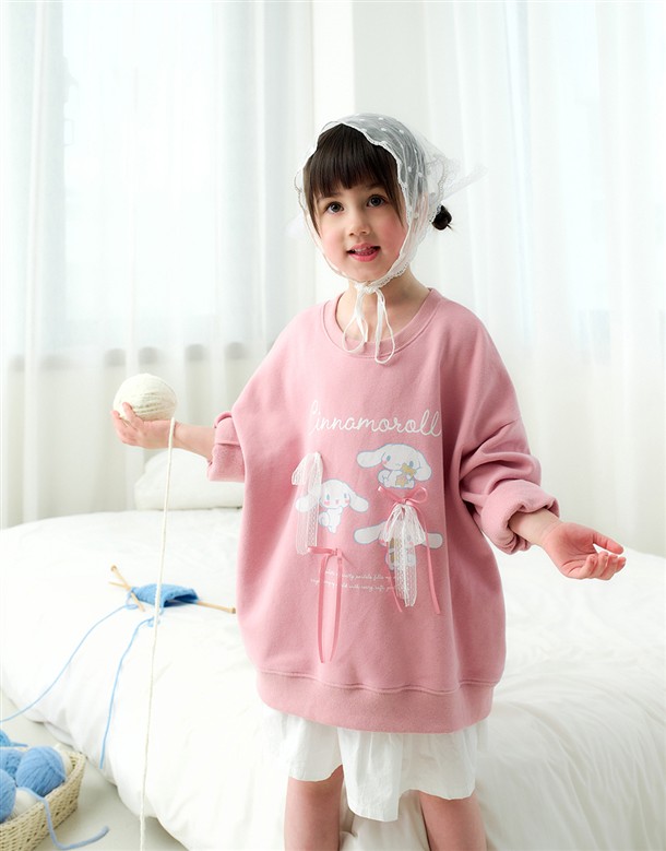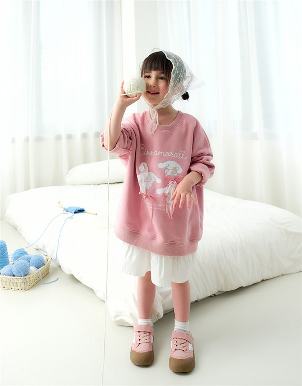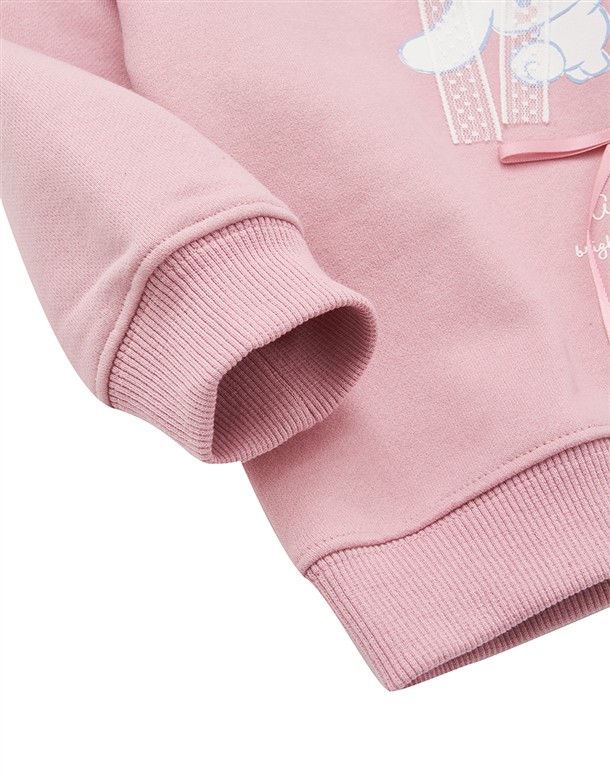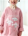 大耳狗精緻印刷,立體蝴蝶結甜美設計,質感薄刷毛落肩大學TEE